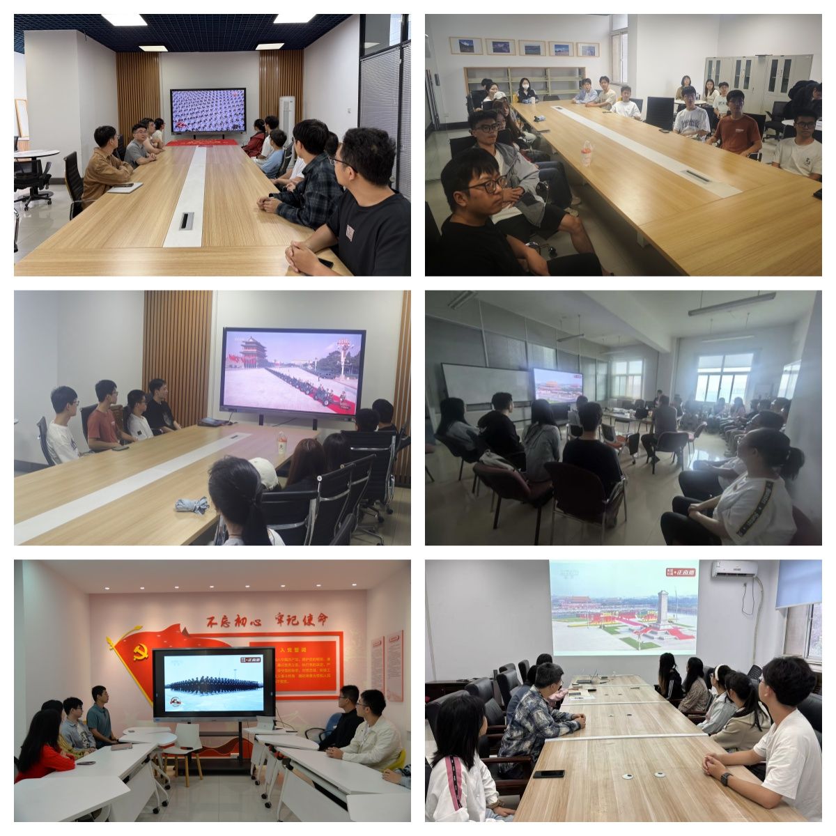 组织师生在学院楼报告厅、会议室、实验室等观看现场直播,共同见证这一庄严历史时刻。