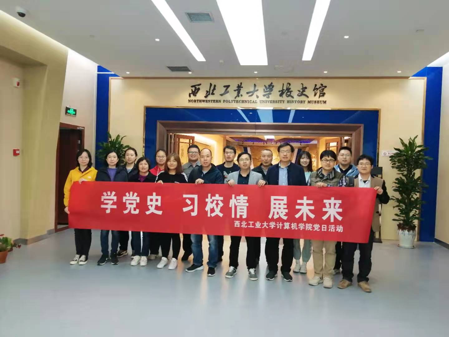 全体同志重温校史和“公诚勇毅”的校训、“三实一新”的校风以及“五个以”的办学理念。随着解说员讲解的历史脉络,党员同志重温了国立西北工学院在抗战之中的艰苦岁月以及古路坝灯火不息的爱国精神,华东航空学院顾全大局的西迁往事和航空报国的伟大抱负,以及哈军工航空工程系的并入和“三严”作风的继承开拓。“脉源三支,强强联合”,一段段历史诉说着校训校风的由来。机关党支部书记曾又其带领大家回顾了新中国发展史。