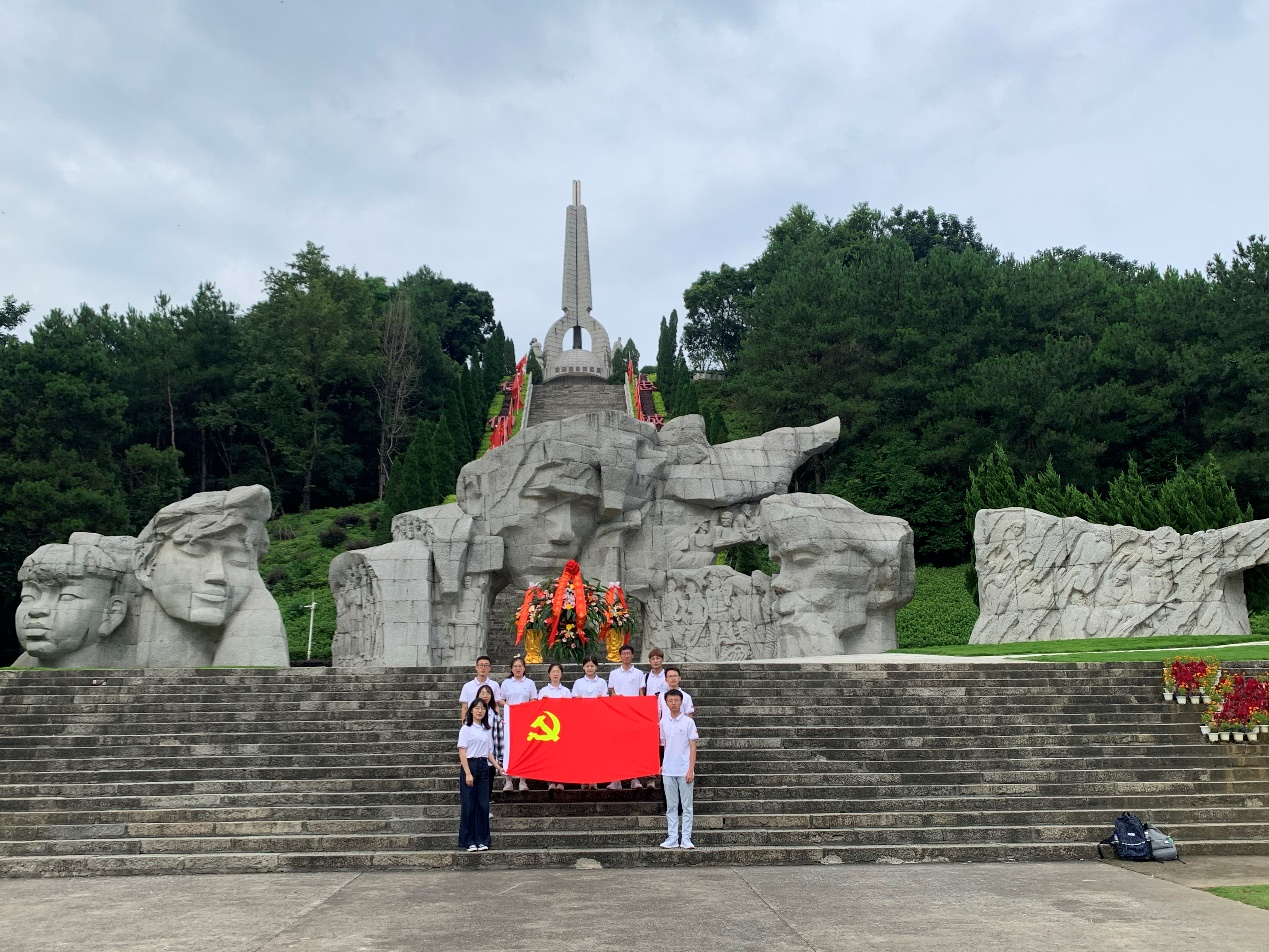 随后,实践队员们在大型群雕前敬献花篮,缅怀革命先烈。怀揣着无比敬意,握着党旗,回顾自己的入党初心,以此表达对牺牲的将士们崇高的敬意,同时对自己的入党初心进行一次反思、洗礼、升化。