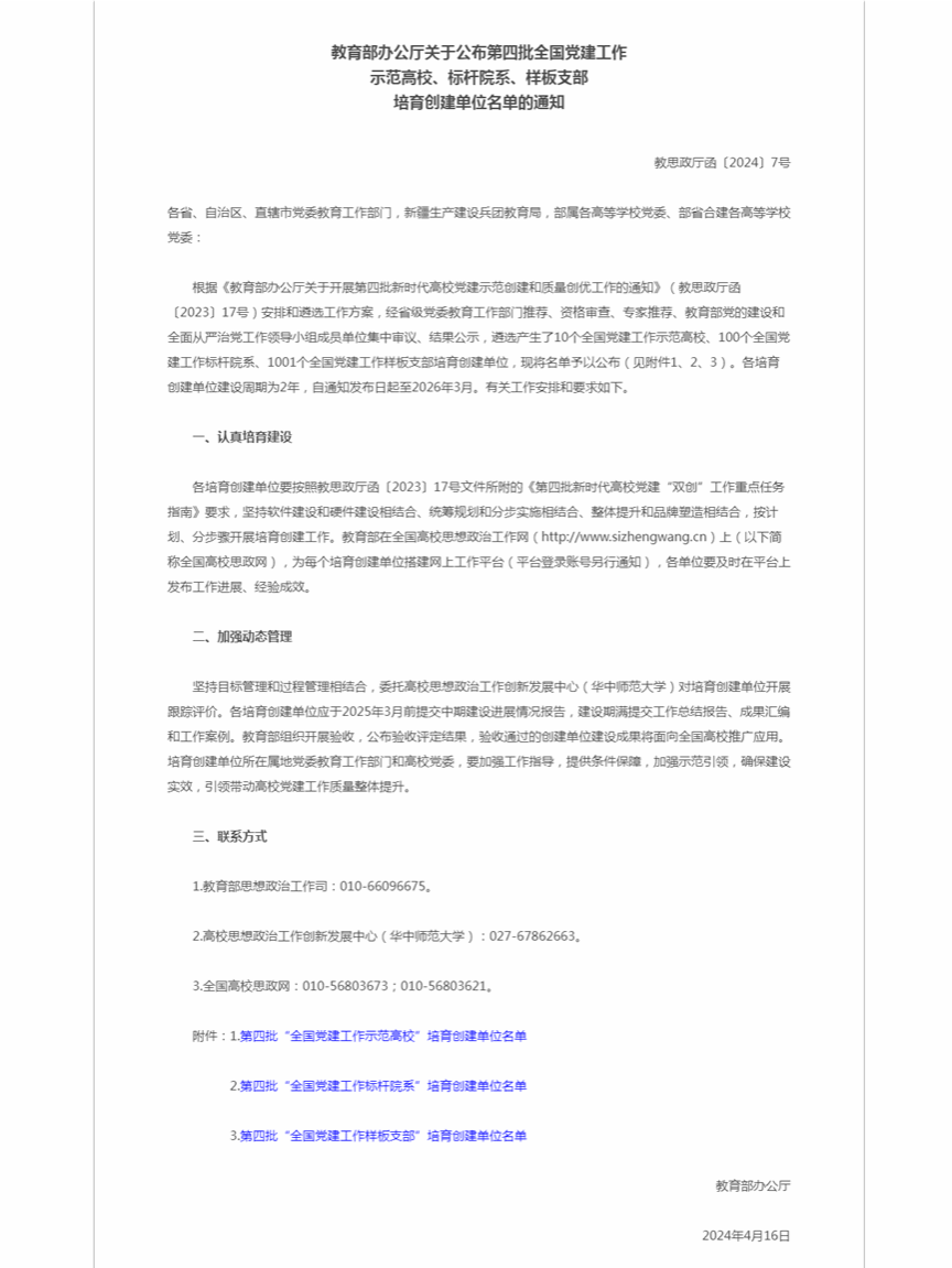 近日,教育部公布第四批新时代高校党建示范创建和质量创优工作(简称“双创”)培育创建单位名单。动画疯