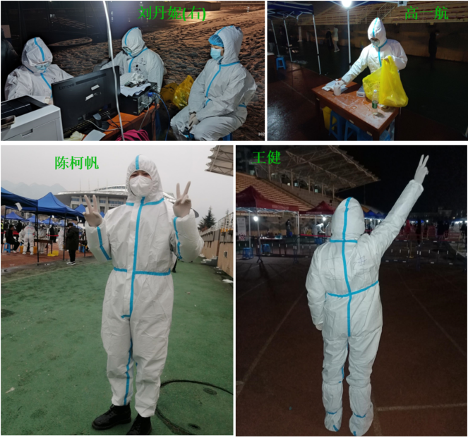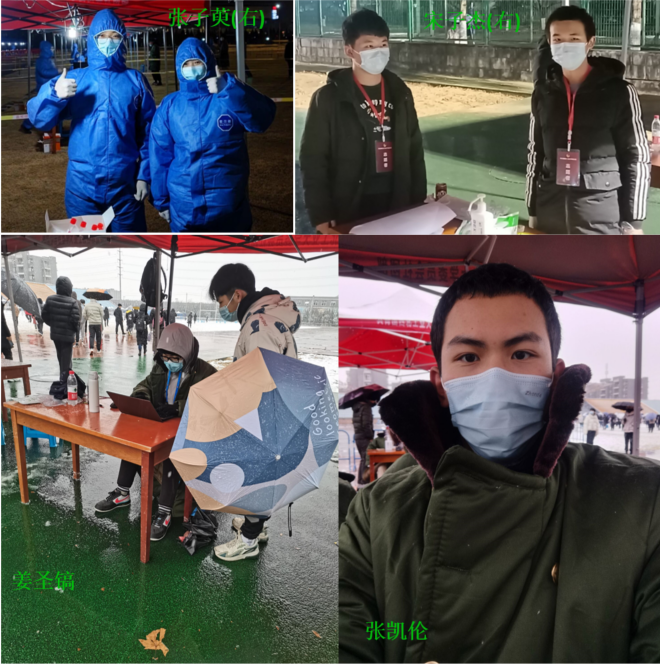 本科2020级多名学生挺身而出,担任了核酸检测工作志愿者,负责核酸检测师生健康码、身份证、一卡通的核对以及后台数据的处理等工作。尽管天气寒冷,防护服的束缚与长时间站立让志愿者们有些疲惫,但志愿者们毫无怨言。动画疯