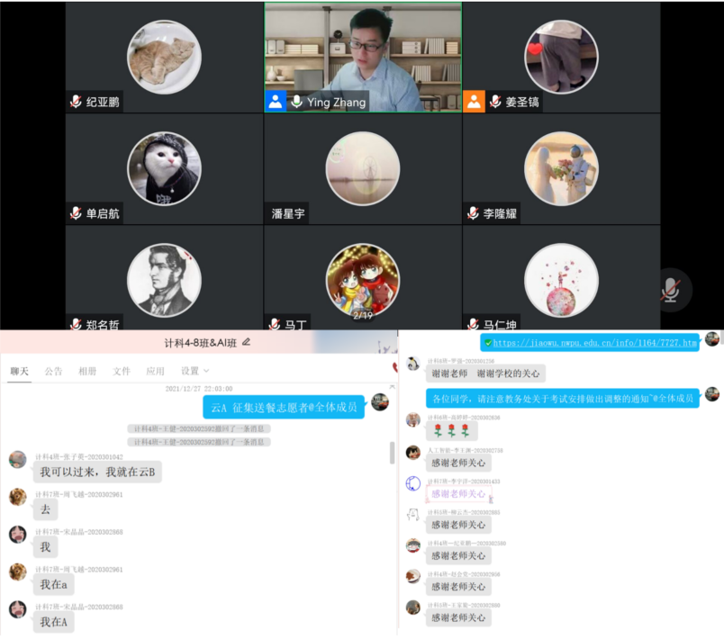 2020级辅导员张营立即召开线上会议,向同学们强调疫情的严峻性,提醒同学们提高自我防护意识,告诫同学们“非必要不外出”、公共场所佩戴口罩、尽量不去人流密集区、勤洗手、注意个人卫生等事项。同时,张营老师提醒同学们不要恐慌,学校有足够的物资储备,能够完全满足同学们的正常学习和生活。此外,张营老师实时关注同学们的课程考试调整安排,及时通知到每一位学生。