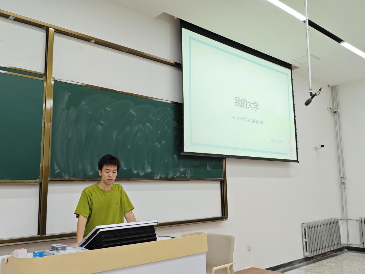 张欣杰则将视角聚焦于学习的具体方法,从选课技巧、学习秘籍到时间管理与课余安排,为新生们呈现了一份详尽的大学“通关攻略”。作为与新生们年龄相仿的学长,他以幽默亲切的语言,解答了大家正亲身经历的选课难题,并主动分享了自己亲测实用的学习工具和受益匪浅的文章,希望帮助新生们找准未来方向。他还勉励大家合理规划时间,在张弛有度中稳步前行,从而更精准、更从容地规划自己的大学生活。