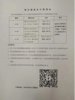 为在宿舍能够饮用方便且卫生的纯净水,开学后会有饮水供应公司人员提供订购服务,各宿舍可凭需求意愿订购(一般开学那几天订购是有优惠的哦~)以下附上学长学姐珍藏的订水信息,各位萌新们按需获取