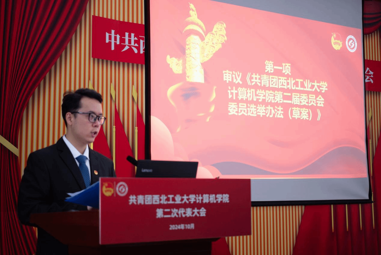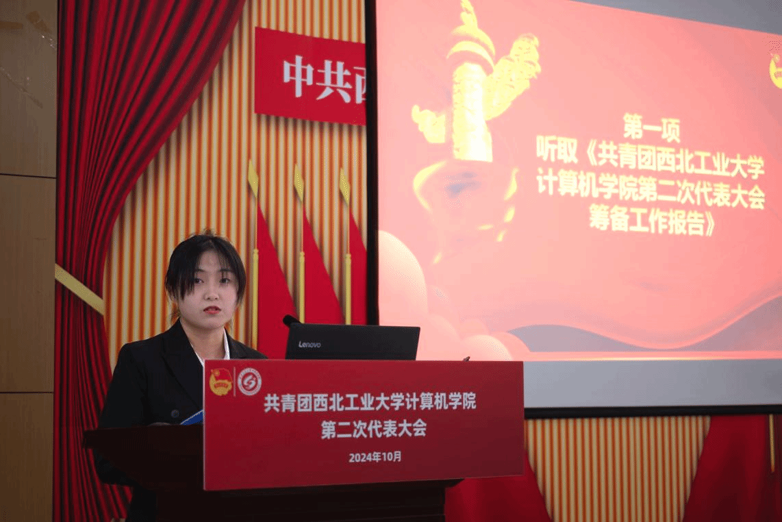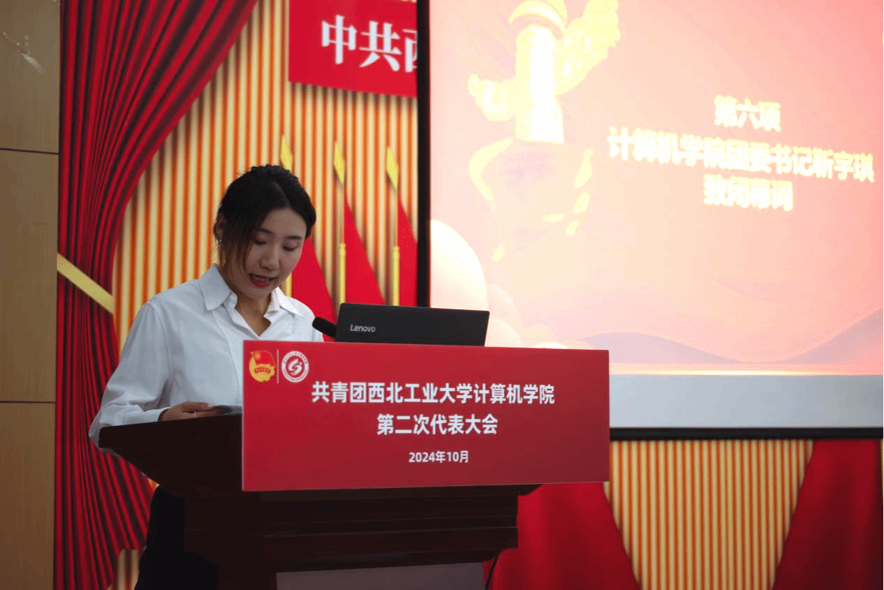 党委副书记赵媛媛致开幕词,宣布大会开幕。她讲到,当前正处在一个信息技术日新月异的时代,人工智能、大数据、云计算等前沿技术正深刻改变着世界的发展格局。作为新时代的计算机青年,肩负着推动科技进步、服务国家发展的历史使命和责任担当。在大会即将开幕之际,她向学院共青团工作提出三点希望:一是坚定理想信念,厚植爱国情怀;二是勇于担当作为,锤炼过硬本领;三是坚持全面发展,涵养高尚品德。她鼓励同学们充分发扬民主、集思广益,为学院青年工作的发展贡献智慧和力量。为开创动画疯