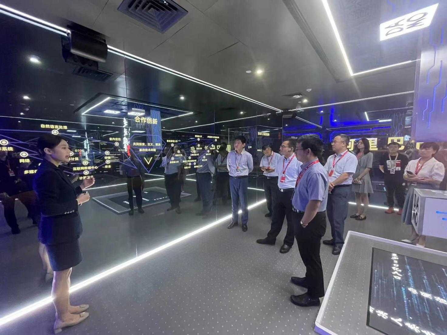 一行来到阿里巴巴集团,在阿里巴巴云智能副总裁、达摩院秘书长刘湘雯等领导陪同下首选参观了阿里巴巴达摩院展厅,了解了阿里巴巴达摩院的历史沿革、辉煌成就、研究领域以及未来展望。