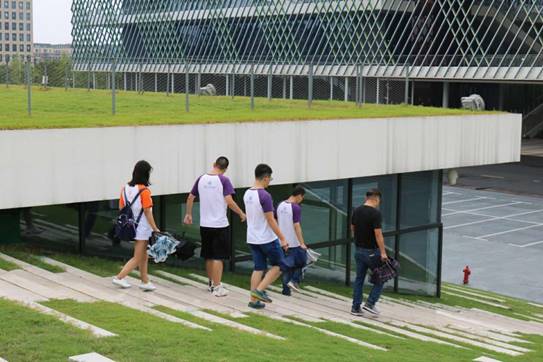 邓学长等人带领实践队前往参观云栖小镇。从露天操场到主建筑,一路上,学长为队员们讲解了云栖小镇发展历程与现代科技内涵,并高度肯定了本次社会实践的实际意义。