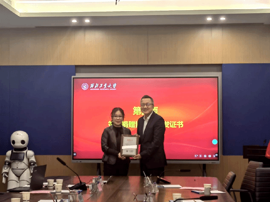 教育基金会向张林颁发了捐赠证书。随后,万海东与张林签署了就业与实习基地协议,由张林、万海东、王兆旭共同为“动画疯