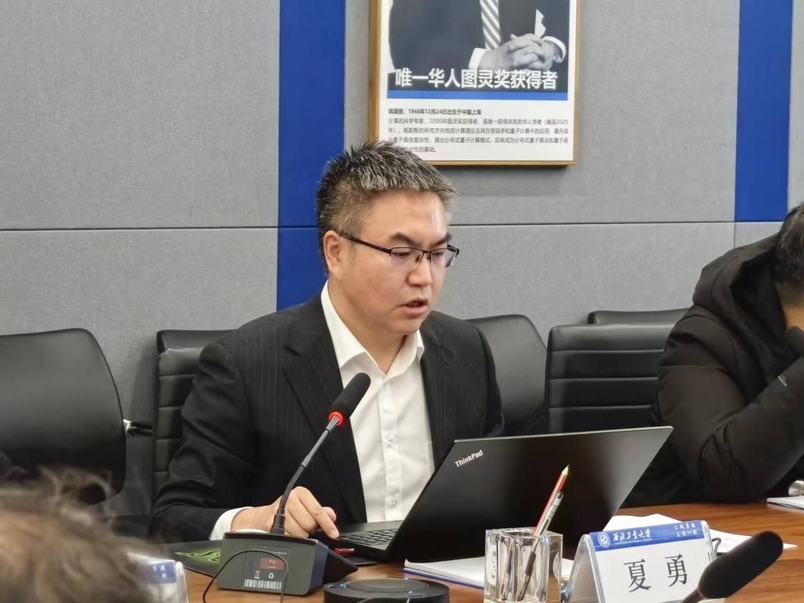 夏勇代表计算机科学与技术学科学位授权点作自评估报告,他从本学位点师资队伍和研究生培养情况、学科主要培养方向、科研平台及教学支撑、人才培养、服务贡献及未来工作重点六个方面进行了详细的汇报。