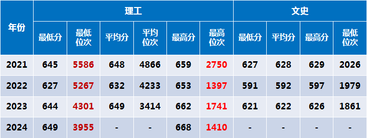 河南省作为全国本科招生生源大省,每年高考人数达到140多万,因此河南省是全国985、双一流A类建设头部高校本科招生必争之地。2024年更为特殊,各双一流A类建设高校为了提高在河南的生源质量展开了异常激烈的竞争。为此,河南招生组在学校招办和学院领导的精心组织安排下,全体招生宣传教师不辞辛劳,耐心咨询、不畏挑战,从而使得2024年河南省的招生生源质量稳步提升,圆满完成了既定目标和任务。普通理工类最低分649,位次3955,相较于2023年基础上又提升了300+位次,历史上首次进入4000位次以内,最低位次与招生人数占前比(0.29%)在学校各省生源中名列第一;在过去连续四年中,学生的录取位次从5000+到4000+到挺近4000以内;普通理工类最高分668分,位次为1410,相较于2023年位次提升300+。中外合作办学最低分617,位次为13941,相较于2023年位次提升近1000。