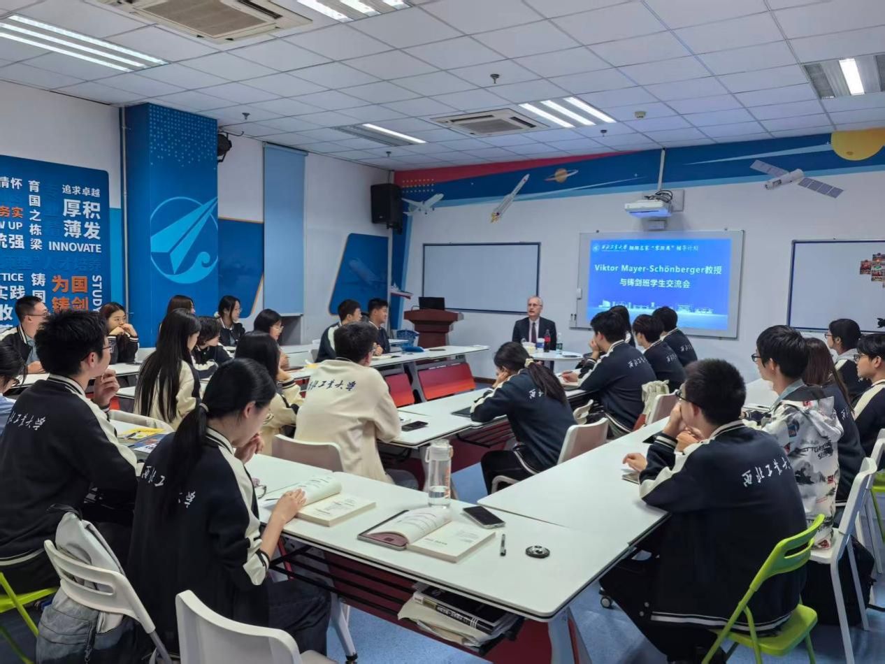 舍恩伯格教授对学校的热情邀请表示衷心感谢。他表示非常高兴有机会和西工大师生进行面对面交流,在当前数字时代,众多学科的发展都离不开数据科学和信息科学的支撑,这种多学科的交叉融合是未来学科发展的趋势。