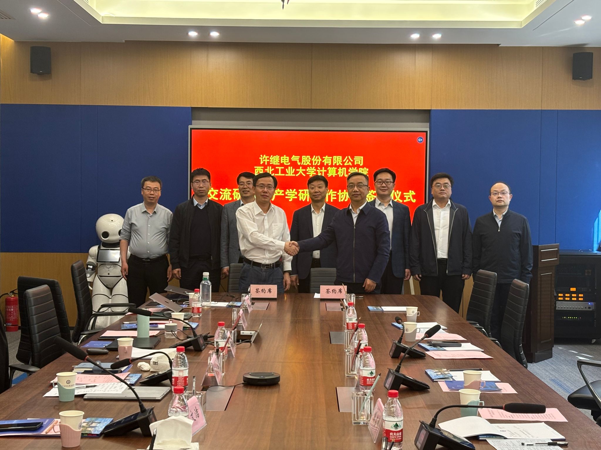与许继电气股份有限公司在学院105会议室举行了合作协议签署仪式。许继电气股份有限公司党委副书记兼总经理许涛,西安许继电气执行董事牛化鹏等一行5人、动画疯