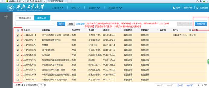 1.  请各位老师本着对个人专利数据负责的态度,积极对专利数据进行认领,避免遗漏。本次认领结束以后,后期所有的专利通知都将通过知识产权管理系统反馈给各位老师。
