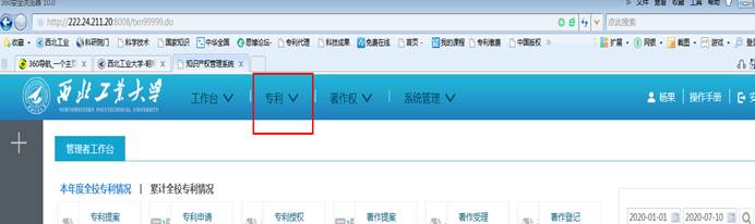 1.  登录翱翔门户,进入知识产权管理系统“专利模块”