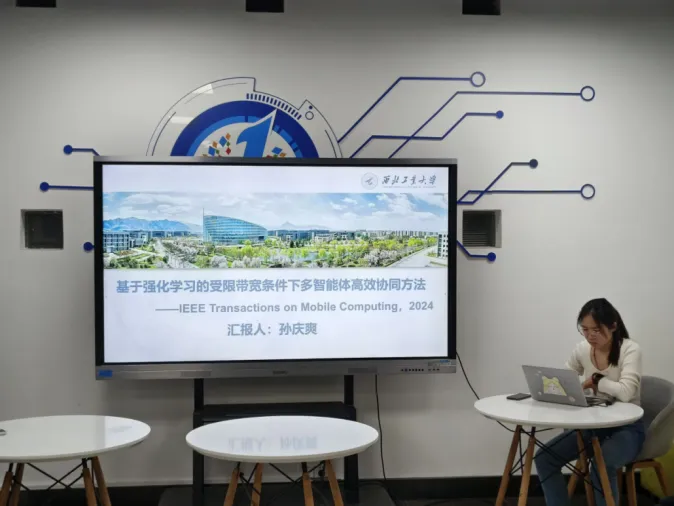 在本次报告中,孙庆爽介绍了在布鲁塞尔自由大学学习期间取得的科研成果“受限带宽下的多智能体通信动态消息大小调度方法”。在多智能体系统中,每个智能体需要在局部环境中作出决策,并且在必要时与其他智能体共享信息。然而,实际应用中通信带宽往往受到限制,这给多智能体系统的信息交换带来了挑战。由于传统方法在有限带宽下具有一定的局限性,她的研究提出了一种新的动态消息大小调度算法——DSMS(Dynamic Size Message Scheduling),其核心创新在于引入傅里叶变换技术,通过频域分析对消息进行压缩,保留低频信息以保持关键信息的完整性。同时,傅里叶变换具备全局视角和可微分性,有利于与深度强化学习方法结合。
