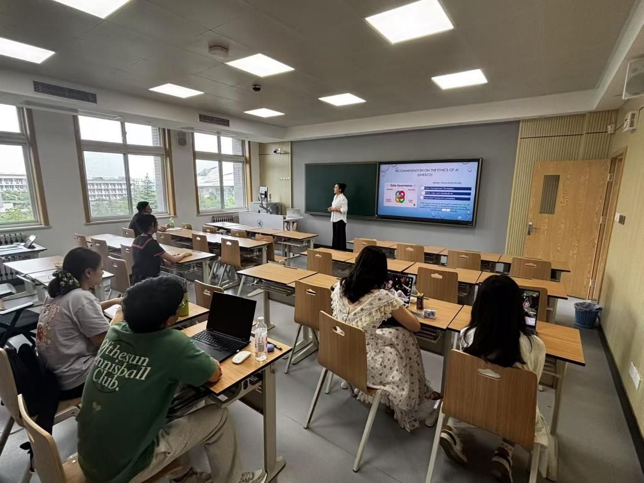 白俄罗斯国立大学的Maria Ablameyko副教授,为学生讲授《数字法律》课程。Maria通过讲解人工智能与法律交叉领域的前沿内容,与同学们重点探讨了数字国家、电子政务、智慧城市、人工智能治理、网络安全与个人数据保护等相关法律问题。课程中,同学们深入学习了人工智能的法律规制、数据隐私保护、跨国法律比较等内容,提升了分析人工智能法律问题的能力。大家不仅能够识别并评估人工智能所带来的法律风险,还能结合具体情境提出切实可行的解决方案。此外,课程拓展了学生应对跨国法律差异的视野,增强了其在数字化与人工智能飞速发展的环境中,运用法律框架解决实际问题的综合能力。