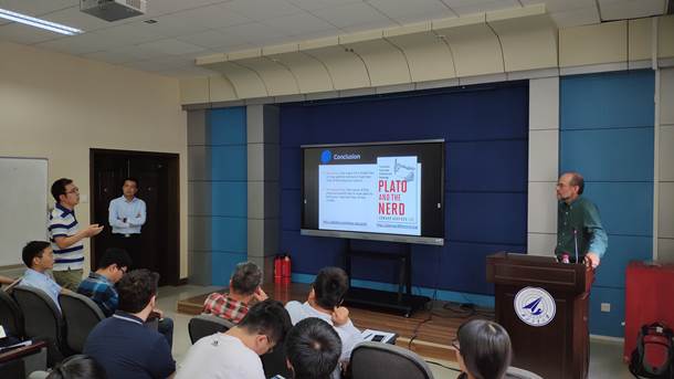 本次报告中,Lee教授首先阐述了经典的实时性问题,分别从硬件与软件、科学与工程的角度对该问题进行了深入剖析。进而,结合其团队近年来在实时系统、信息物理融合系统(CPS)研究方面的工作及进展给出了基于确定性模型的实时软件与系统的设计方法,以及在本领域的未来研究方向以及所存在的几个关键挑战。报告内容引起了与会教师与学生的极大兴趣,就所关注的问题进行了热烈讨论。报告过程中,Lee教授和张凯龙副教授还为部分师生进行了现场签名赠书,《嵌入式系统导论—CPS方法》(第2版)(Edward A. Lee著,张凯龙译)、《嵌入式系统体系、原理与设计》(张凯龙编著),进一步促进了学术交流。随后,Lee教授来到动画疯