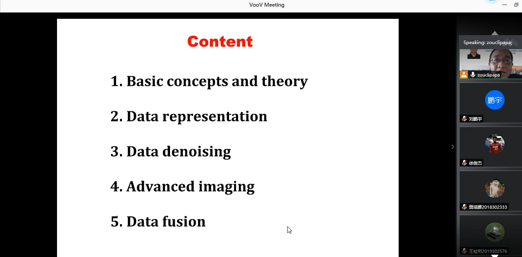 2020年7月13日至7月20日,法国国家科学研究中心/里昂国立应用科学学院Zhu Yuemin朱跃敏教授开展了《先进信息处理:从基础知识到最新应用》的在线课程,吸引了众多研究生和本科生的参与,共有30余位学生注册了本课程。